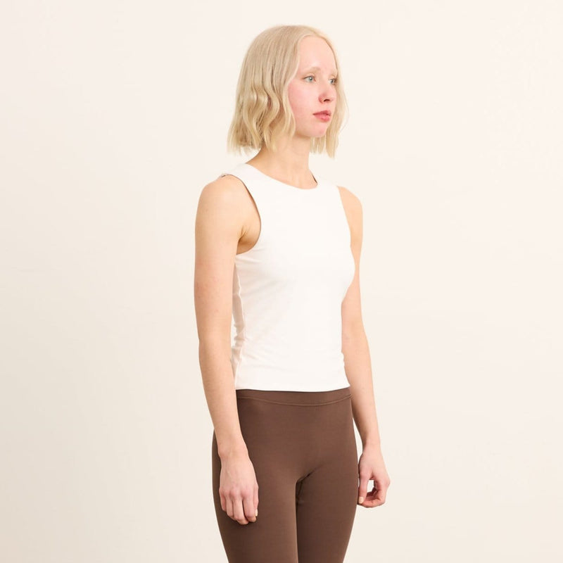 - Flattering, fitted tank that sits just below the waistline